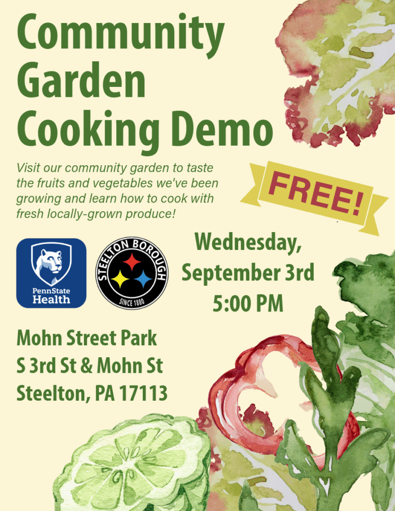 • Wednesday, September 3 at 5:00 PM – Cooking Class/Demonstration with Penn State Health