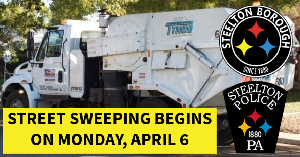 Street sweeping in the Borough of Steelton will begin on Monday, April 6, and end on November 30. Please be aware of all posted signs when parking your vehicle(s). All other parking violations will continue to be enforced during the months the street sweeper is running. Any questions or concerns can be directed to Chief Lacey at slacey@steeltonpa.com or 717-439-5882.